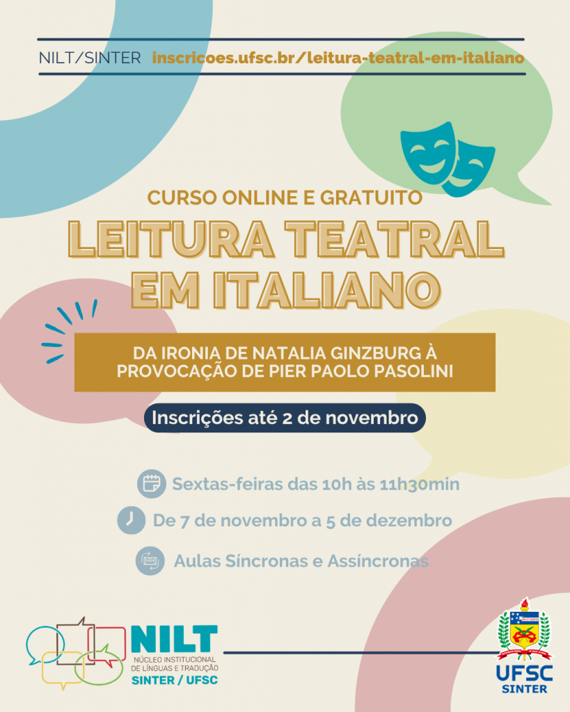 [NILT / SINTER] Inscrições abertas para o curso de Italiano “Leitura teatral em italiano: da ironia de Natalia Ginzburg à provocação de Pier Paolo Pasolini – Italiano Instrumental” (até 2/11/2025)