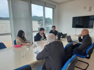 On the second day, activities began with an official meeting at the UFSC Rectorate Building II, attended by the Secretary for International Relations, Prof. Luiz Carlos Pinheiro Machado Filho, and the Superintendent of Projects of the Prorectorate for Research and Innovation (Propesq), Prof. William Gerson Matias.